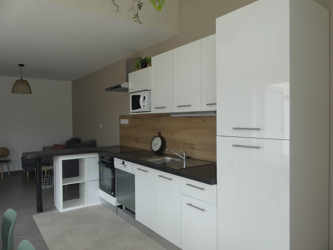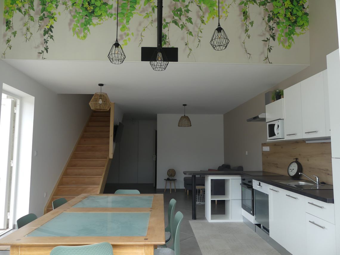 C’est une pièce très lumineuse où l’on prépare de bons petits plats dans la cuisine équipée.