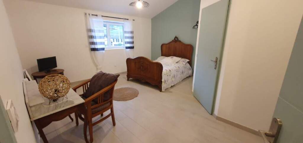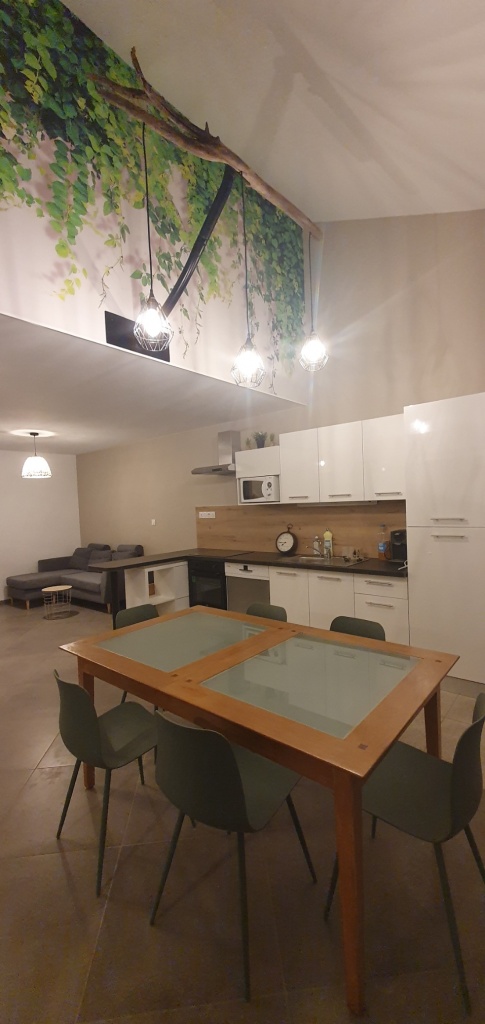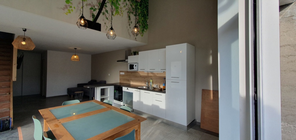 Voici notre charmante colocation établie dans une maison rénovée de 120m² avec une belle terrasse et un jardin à disposition, en plein centre du village d’Artas.
