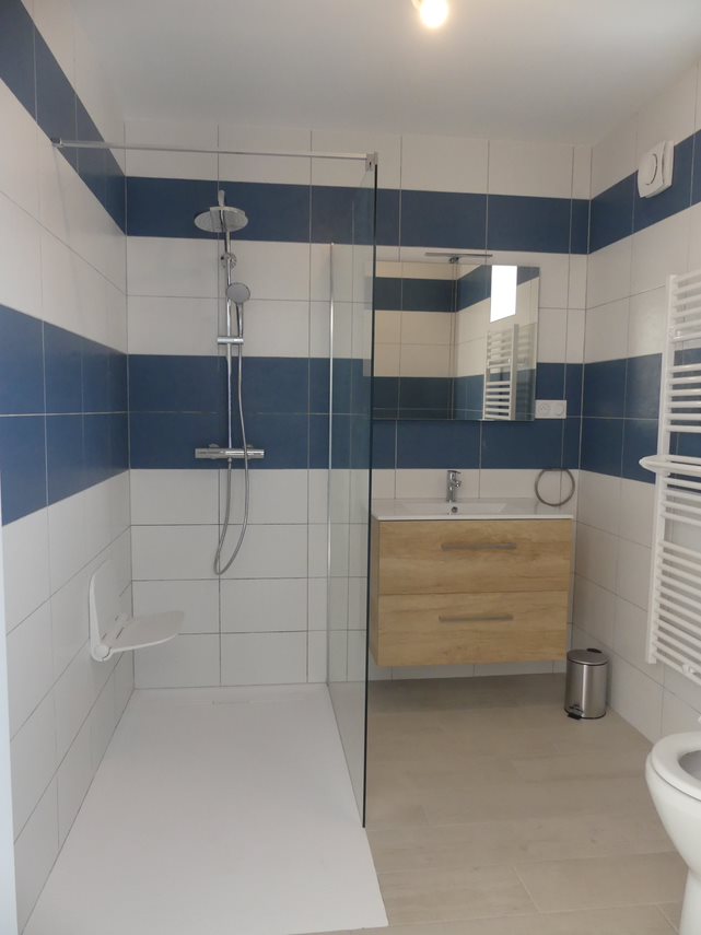 Chaque chambre est meublée, mais il y a également la possibilité d’apporter ses propres meubles. Les chambres font environ 20 à 22 m² elles possèdent toutes leur salle de bain privative. Une chambre est en rez de chaussée et deux à l’étage.